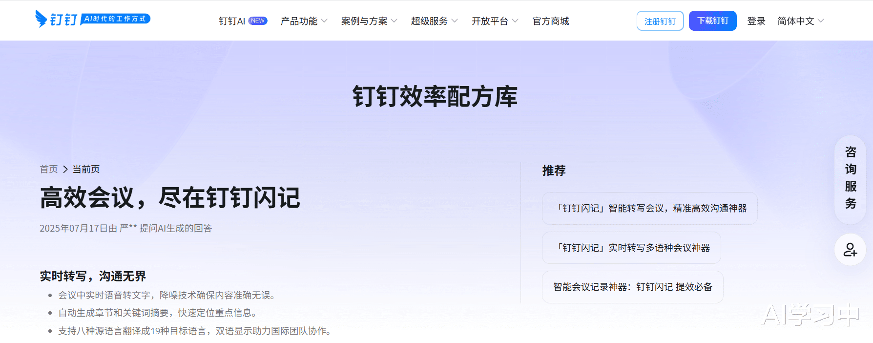 这两款工具均集成了先进的 AI 能力,能够 实时进行会议语音转文字、自动区分发言人、生成会议纪要摘要,并标记待办事项。