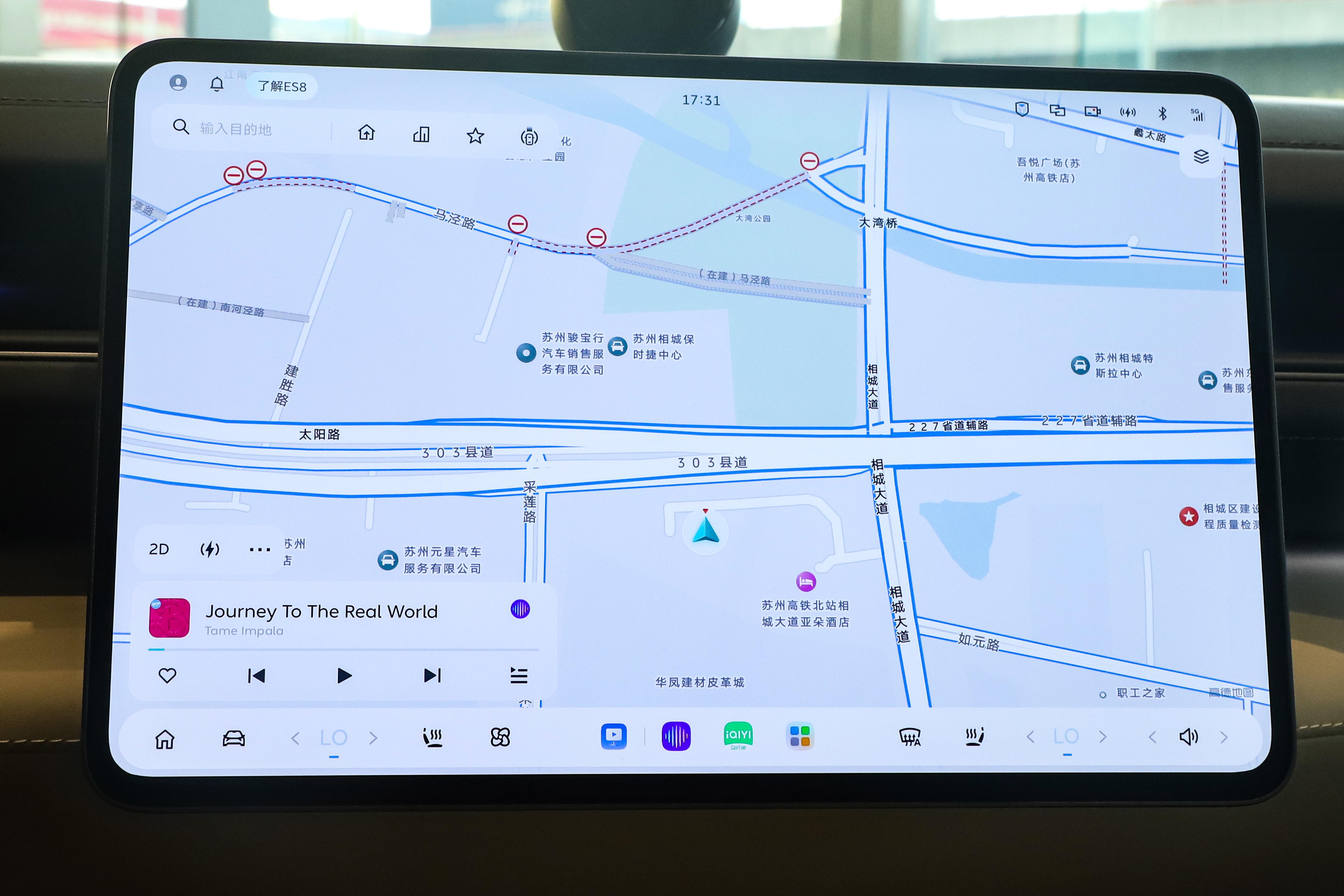 当然啦,咱们无锡人的性格可不只是光要排面,咱们更务实,懂得都懂,选车就得选动力。这样大体量的车,零百加速仅需3.97秒,成为同级别车中少数进入3秒俱乐部的SUV,这表现真的可以说是足够亮眼。采用前置+后置双电机布局,电机总功率为520千瓦,总扭矩为700N•m,车速可达220km/h,试驾的时候,小编开着它在市中心中山路上跑,红绿灯起步时一点也不拖沓,旁边的车还没反应过来,它已经冲出去了。上高速的时候,前面有大货车,加速时深踩一脚,动力立马上来了,超车轻松有底气。同时,动力输出也比较平顺,不会像有些性能车开起来那么蹿,就是想快能快,要稳也能稳。续航和补能方面,配置了102KWh三元锂电池,搭载900伏高压快充平台,支持4C 快充,补能更快,CLTC纯电续航里程为635km,这样的续航里程,在无锡这座小城市,日常城市上下班,接送娃娃都管够,每天50km,十天充个一回电就成了,节假日的时候,要是去周边旅游,比如去南京吃烤鸭,或者去苏州听评弹,去杭州看西湖,那一个来回都是绰绰有余,压根不用半路上四处寻找充电桩。百公里耗电量为16.6kWh/100km,对于这么大体量的车来说,这样的数字也是比较经济划算的。