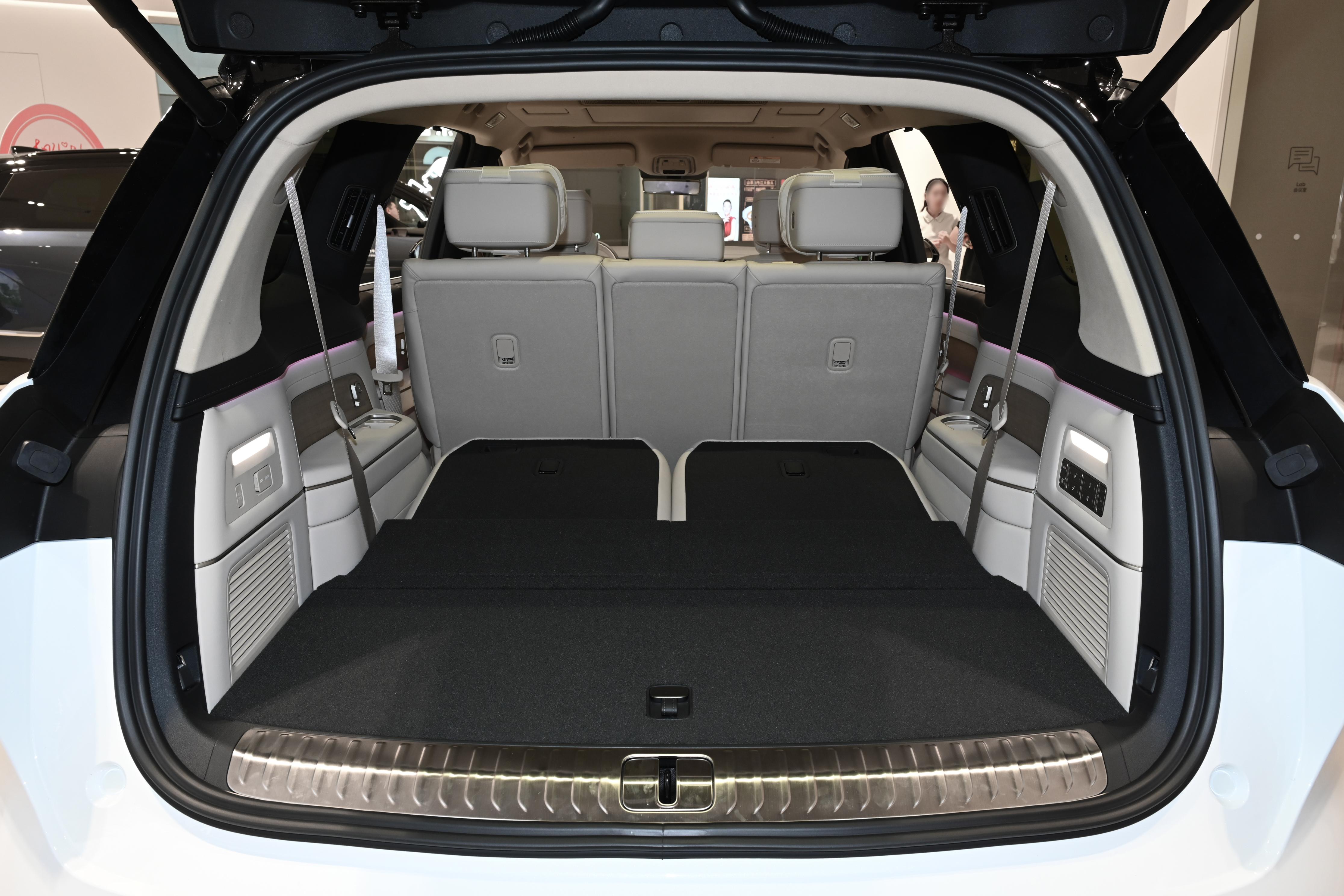 拉开车门,这车的内饰,满满的豪华与科技感。感觉就像一个精心设计的移动会客厅,全车覆盖52㎡超纤绒环保包覆,大面积软材料的包裹,加上均质考究的缝线工艺,豪华的档次立马上来了。15.6英寸OLED中控屏,分辨率为3k,画面清楚,内置高通骁龙8295芯片,操作便捷流畅,支持卫星导航,高德地图,手机互联映射,OTA升级,5G网络等功能。语音交互方面,支持分区语音唤醒识别,不管坐在哪一排都可以使用语音功能,小助手反应又快又准,不串台,后排说开车窗,它不会开前排的窗户。而且还能说上一串指令,不用总是一遍一遍的用唤醒词喊它。同时,还支持可见即可说功能,比如试驾的时候,小编对着中控大屏说了一句,导航去惠山古镇,大屏分分钟规划好路线,经过锡惠桥时,屏幕弹出是否搜索附近美食?我就说了一声,找个小笼馒头店,屏幕上立马就列出了附近的店,这感觉真的是方便。主驾前方还有一个38英寸的AR- HUD抬头显示,开车的时候,各种关键行车信息都投射在前挡风玻璃上,也提升了安全性。娱乐配置方面,内置27扬声器8.1.4.2杜比全景声音响系统与1600万色的车内氛围灯组合,还有21.4+8英寸的后排吸顶式娱乐屏,支持三排观影,长途旅行的时候,这就是个移动音乐厅+移动电影院,旅途不寂寞,让每次出行都有情有趣。