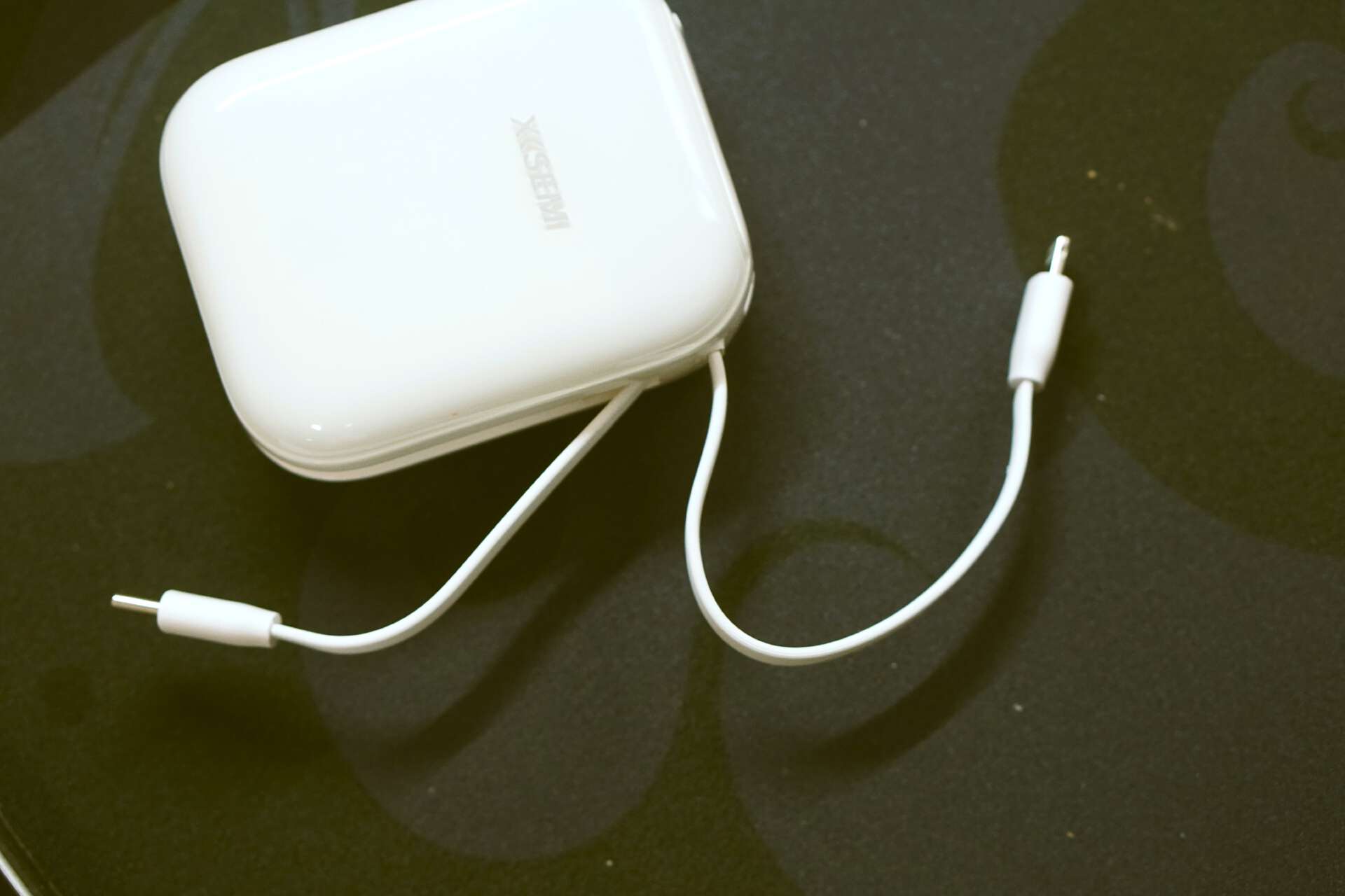 最让人惊喜的是机身侧面的隐藏式双自带线设计——Type-C与Lightning接口线材巧妙收纳在凹槽中,不用的时候可完全嵌入在机身里,与外壳齐平,不影响整体美观和便携性;