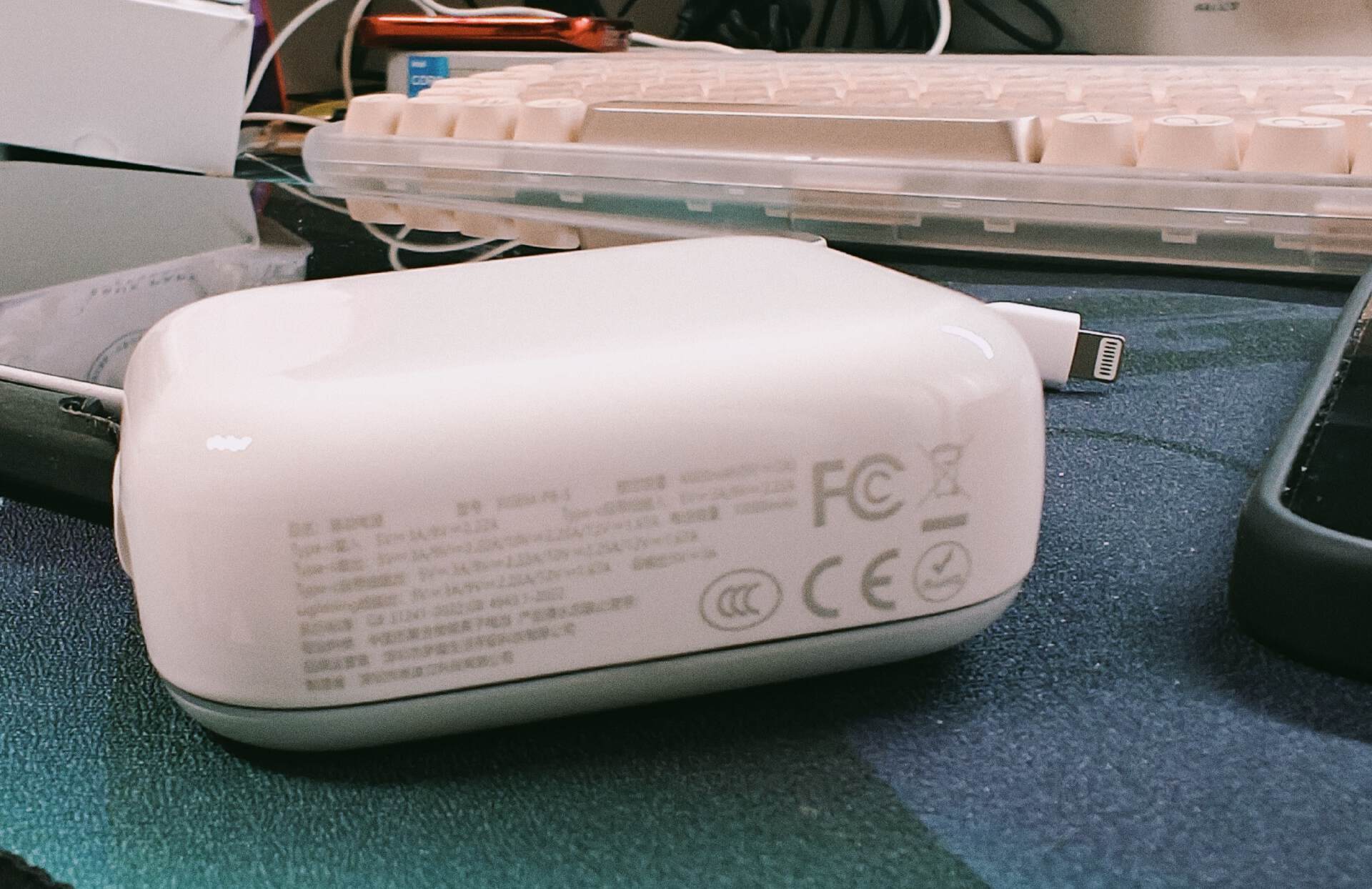 需要使用时,轻轻一拉即可抽出,线材长度约15cm,刚好满足手持充电的需求,避免了长线材的缠绕烦恼。这种设计对于我这种容易忘带线材的人来说太友好了:给一加Turbo6V充电时,直接抽出Type-C线连接即可;给苹果手机充电时,切换Lightning线无需额外转接头;日常出门只需带一个充电宝,就能覆盖安卓、苹果主流设备,极大简化了出行装备。线材接口处采用加固处理 ,耐用性值得信赖。