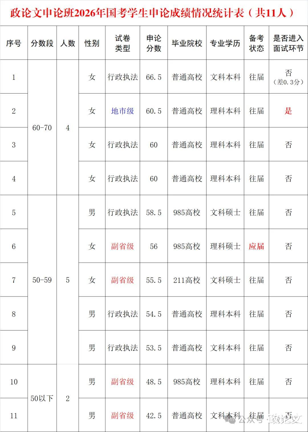 政论文2026年国考申论班,有12位同学向我反馈了申论成绩,其中1位同学报考的是四川省考,行政执法类申论成绩为65.5分。