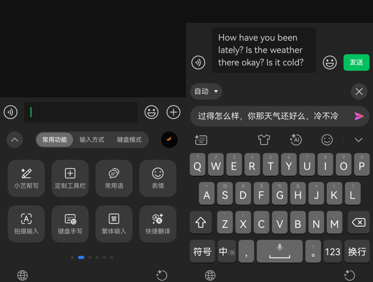 如果说悬浮模式解放了我们的屏幕,那么快捷翻译功能,则是在悄悄拓宽我们社交的边界。现在刷社交媒体,经常能看到外国网友的有趣分享,想在评论区聊两句,却总要在翻译软件和社交APP之间来回切换,特别麻烦。小艺输入法帮你解决了这么困扰。当你想用英文回复时,只需在键盘上输入中文,对应的英文翻译几乎同时出现,一键即可发送。这样和世界各地的朋友交流,感觉就自然多了,不再被翻译这件事打断聊天的兴致。