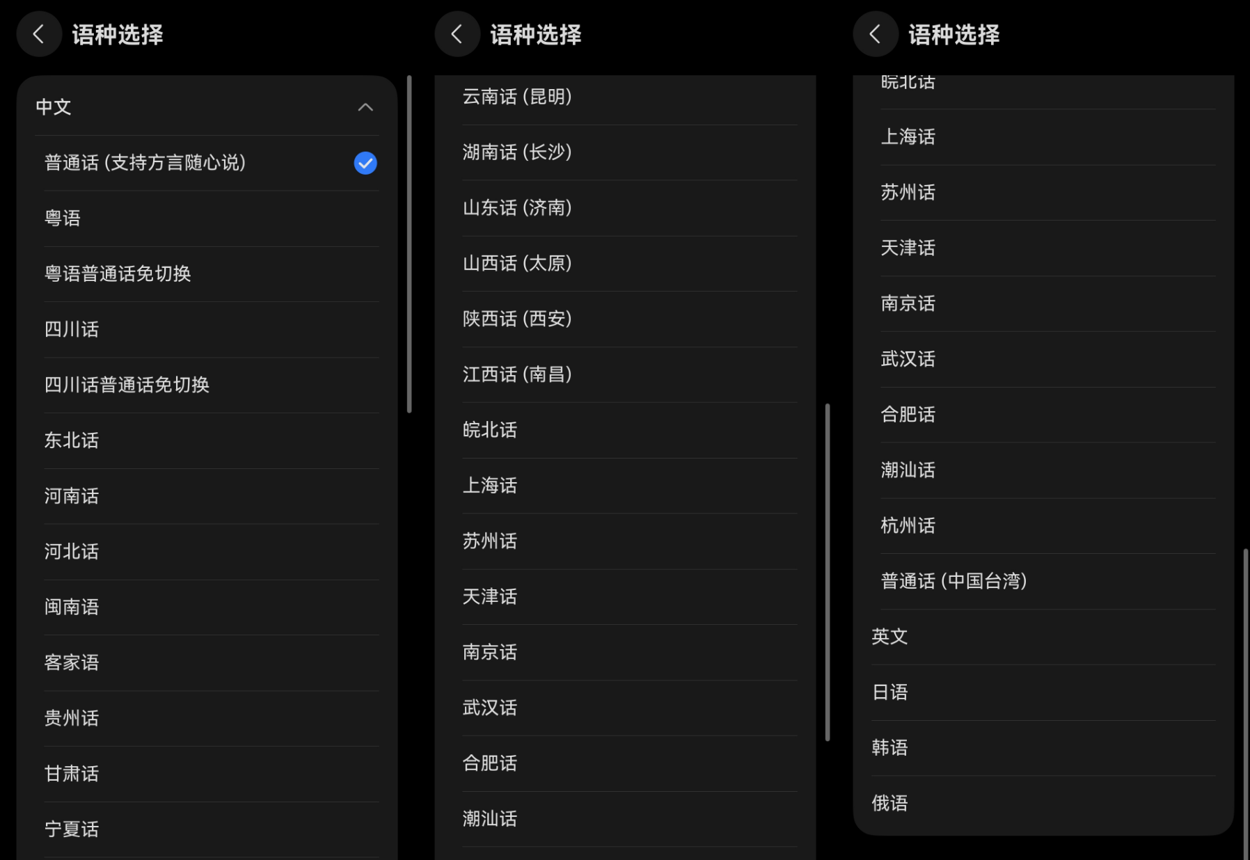 最有人情味的功能,大概是语音输入里对方言的支持。家里的长辈如果不会打字,用上小艺输入法的语音输入功能,能够自动识别方言并转换成准确的表达。