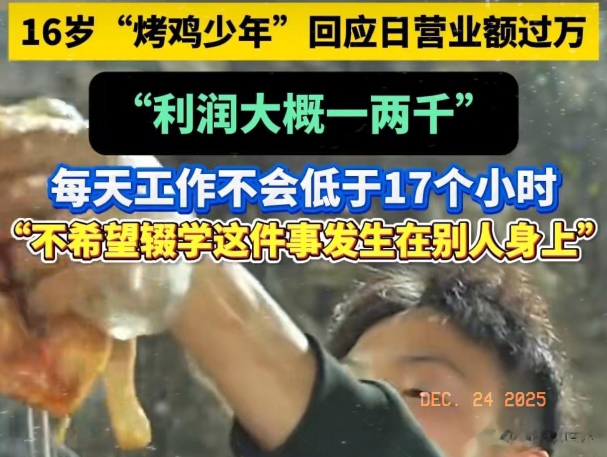 可现实没给过他“选直路”的机会。当他失学时,没人来问“要不要助学金”,没人帮他找继续读书的途径;当他靠烤鸡撑起家时,却有人跳出来说“没文化也能赚大钱”,还有人指责“你给孩子做了坏榜样”。就像网友犀利点评:“失学时相关部门‘失踪’,爆红后却要他背‘没文化’的锅,这是什么道理?”
