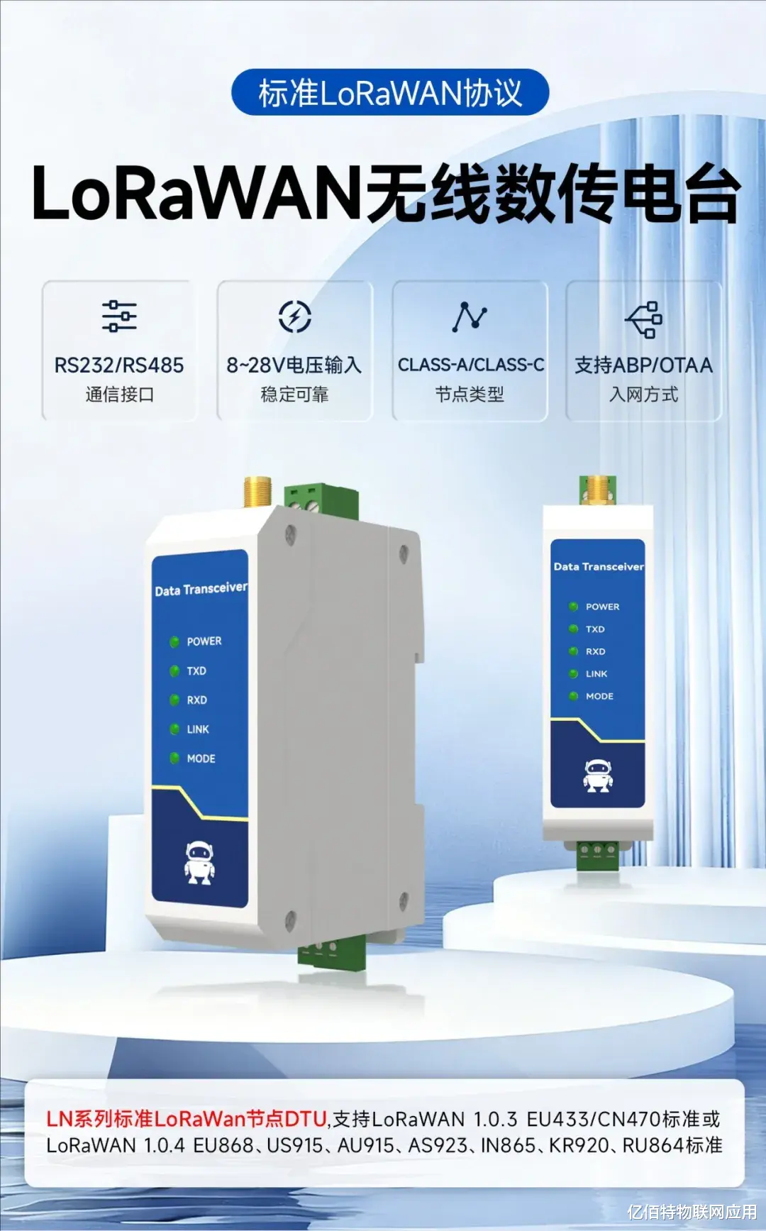 E95-DTU系列电台出厂即搭载LoRaWAN标准协议固件,支持Class A和Class C两种设备类型,并提供ABP与OTAA两种入网方式。这一设计使其能够兼容主流LoRaWAN网关与网络服务器,无需二次开发即可快速接入现有物联网系统。