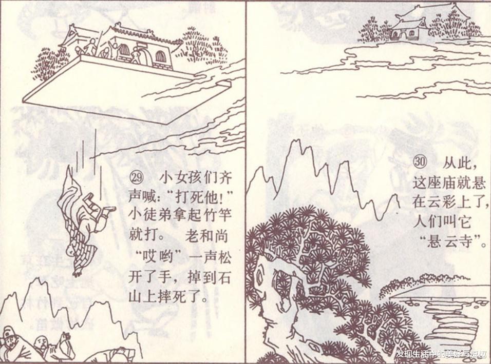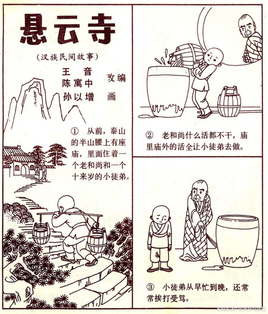 悬云寺这个故事还有两个版本的连环画,皆是由芷汀的故事为蓝本创作的。如1956年张玮绘画的和刘王斌所绘的彩色连环画。