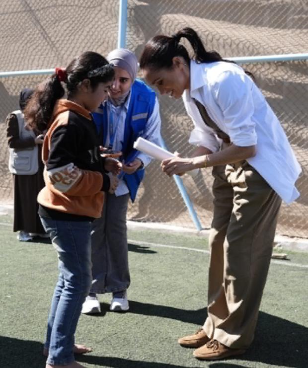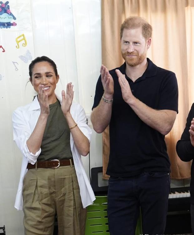 近日梅根和哈里到约旦,并一同来到QuestScope的青年人活动中心访问;让人没想到的是梅根罕换风格,一身休闲打扮十分洒脱,还有哈里也很随意。