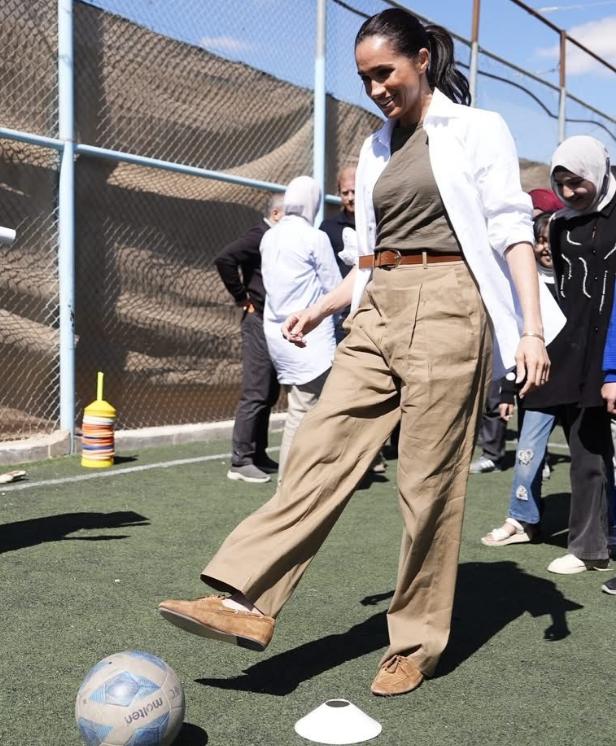 期间,她踢足球、和小朋友互动等,新造型看着不高级,但方便她活动,也能拉近与普通人的距离,看来梅根是一个聪明的女子,即使不再是王室高级成员,出席活动之前考虑的问题很全面,比如着装的选择。