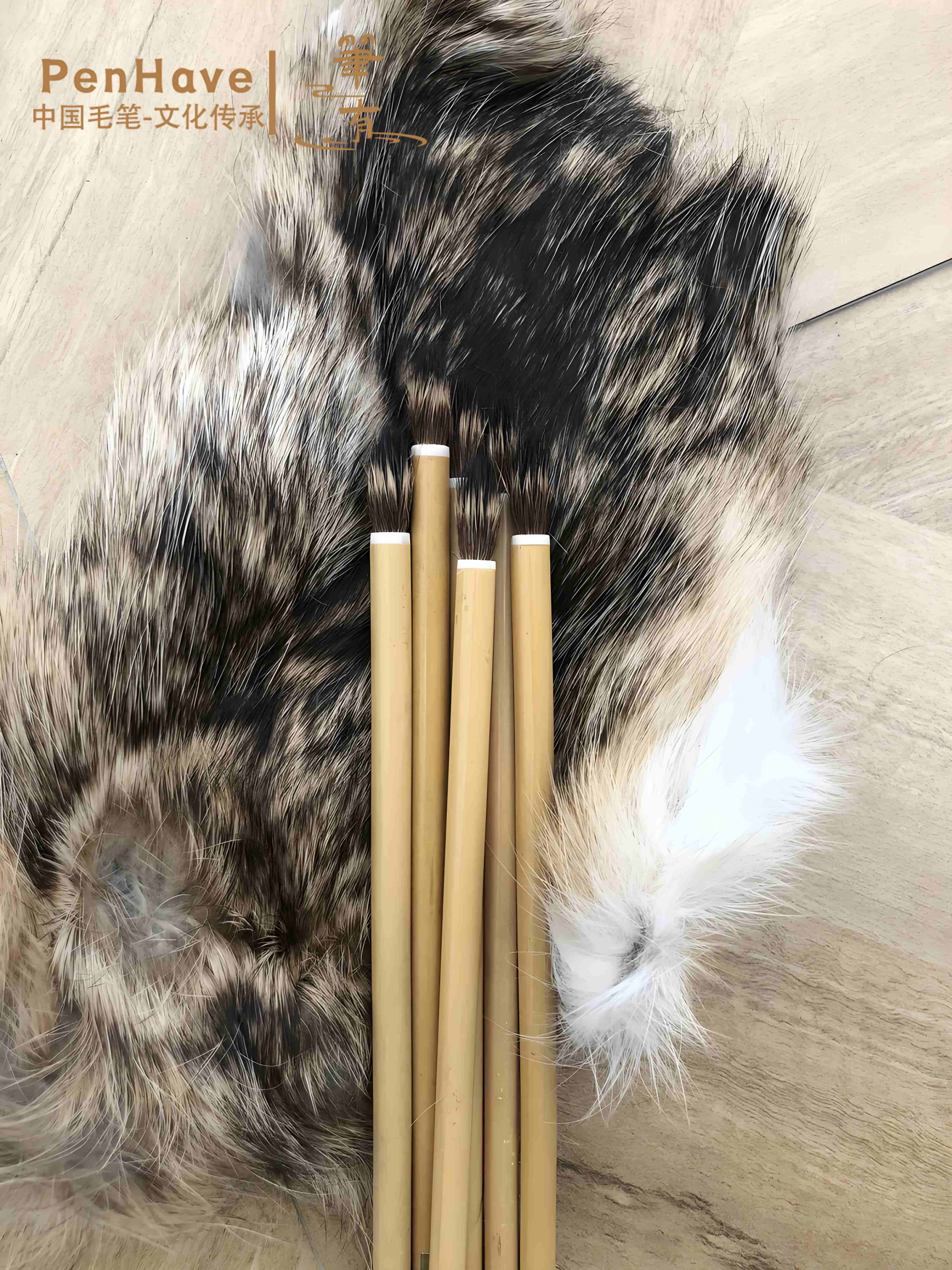 黄鼠狼尾毛(狼毫): 取其刚柔相济、富有韧性之性。并非整条尾巴的毛都适用,仅取尾巴中段那一段油润黑亮、锋颖锐利、挺拔劲健的“黑尖”部分为上品。不同产地、年龄的黄鼠狼,其尾毛品质差异显著。