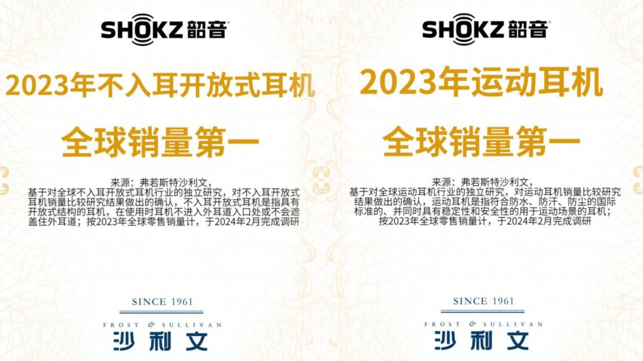 据沙利文的数据显示,在2023年,Shokz的运动耳机销量达435万台,不入耳开放式耳机销量达520万台,两项数据均登顶全球类目销量第一。