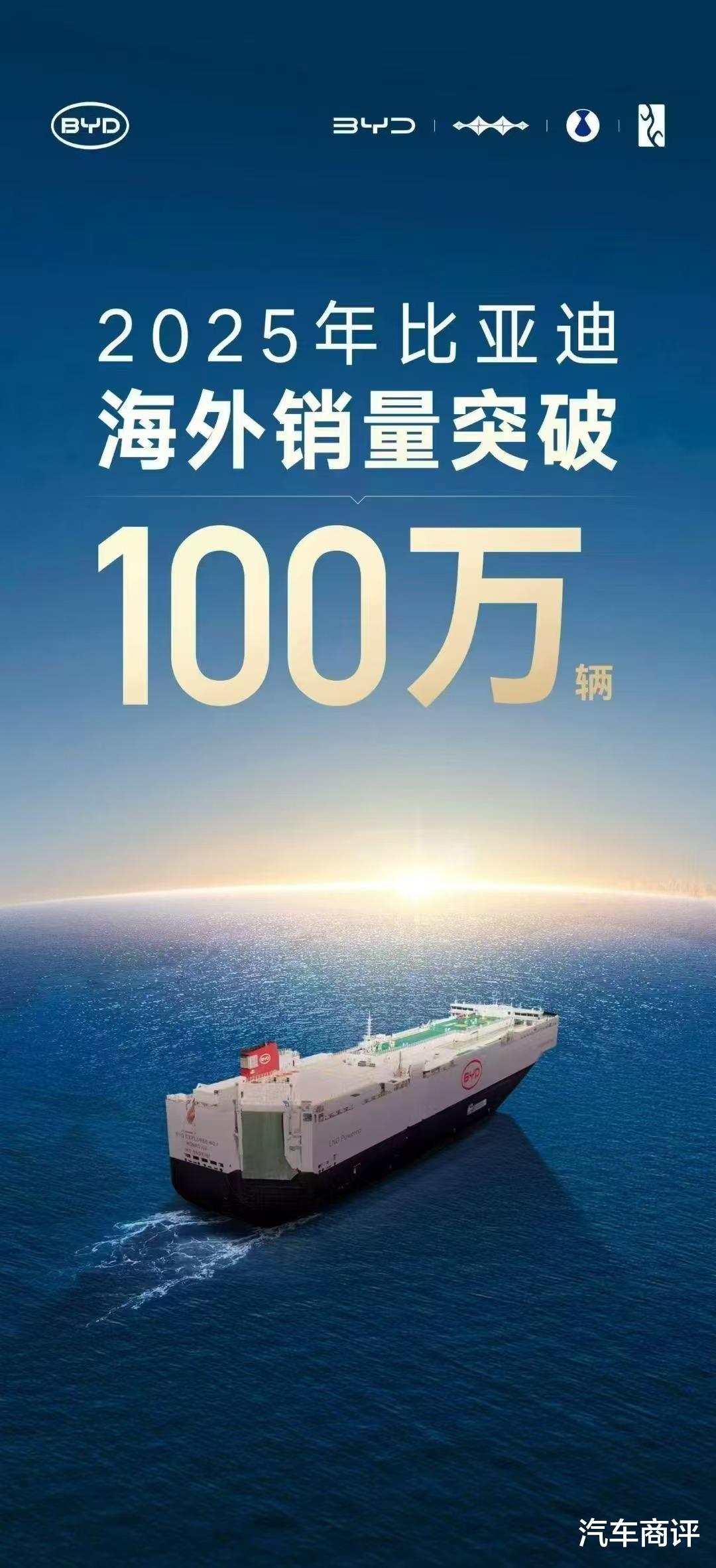 2025年,比亚迪海外销量实现跨越式增长,首次突破100万辆大关,同比增长145%,海外销量位居中国车企前列。