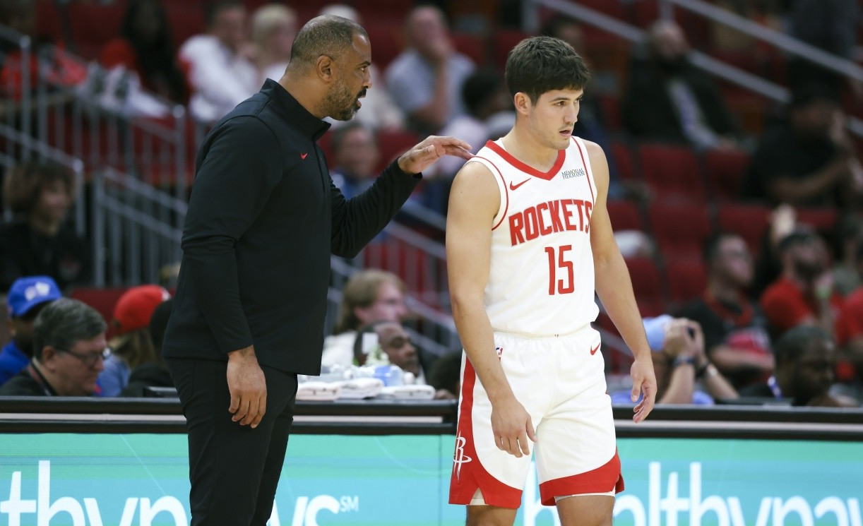 火箭开局出现了慢热的局面,开局前4分全部来自申京强吃雷诺,在替补衔接段用考德威尔主防申京,但是这两位菜鸟明显不是申京的对手,申京在上半场高效砍下18分2篮板2抢断,投篮9中8,非常高效。