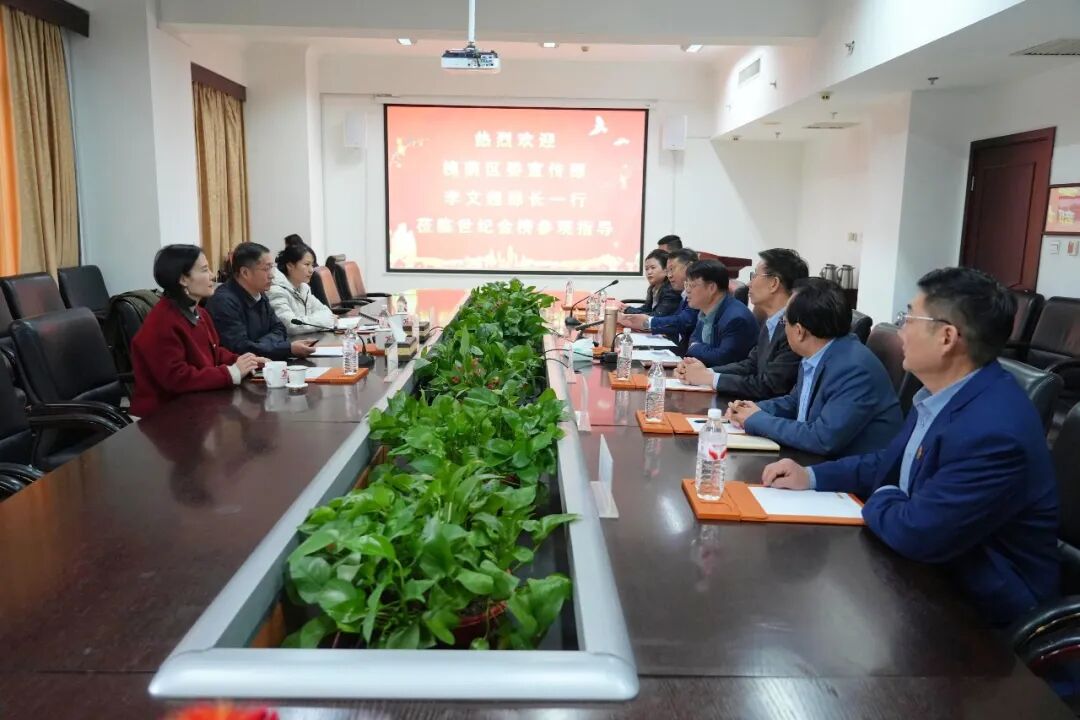 2月26日,槐荫区委常委、宣传部部长李文超,槐荫区融媒体中心主任朱晓立,区委宣传部新闻科科长刘雨晴一行莅临世纪金榜参观指导。张泉董事长及相关负责同志陪同参观并参加座谈。