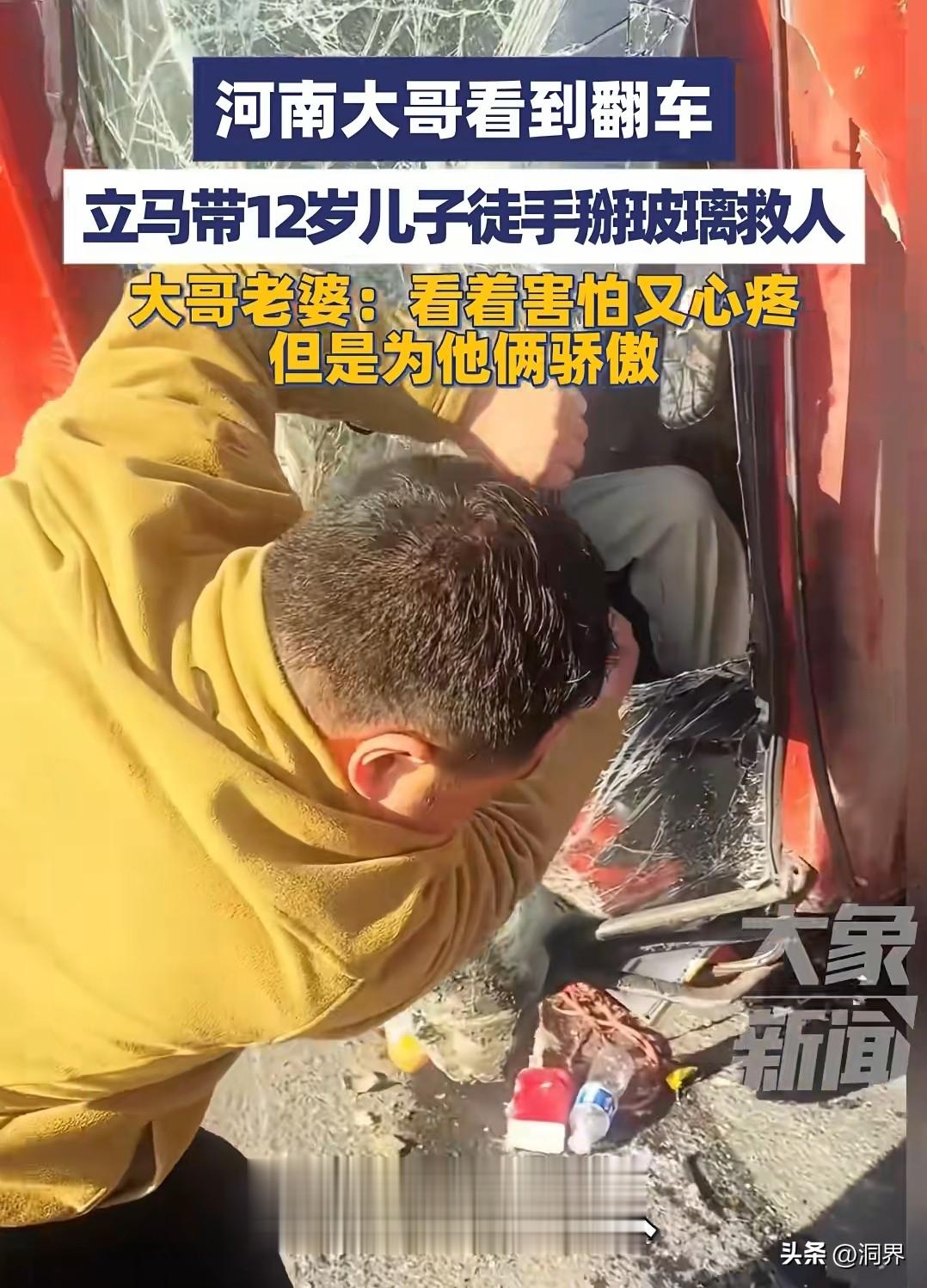 11月29日,一场突如其来的货车侧翻事故打破了冬日的宁静。在危急时刻,一位普通的河南父亲带着他年仅12岁的儿子,毅然冲上前线,用双手掰开了生命的通道。