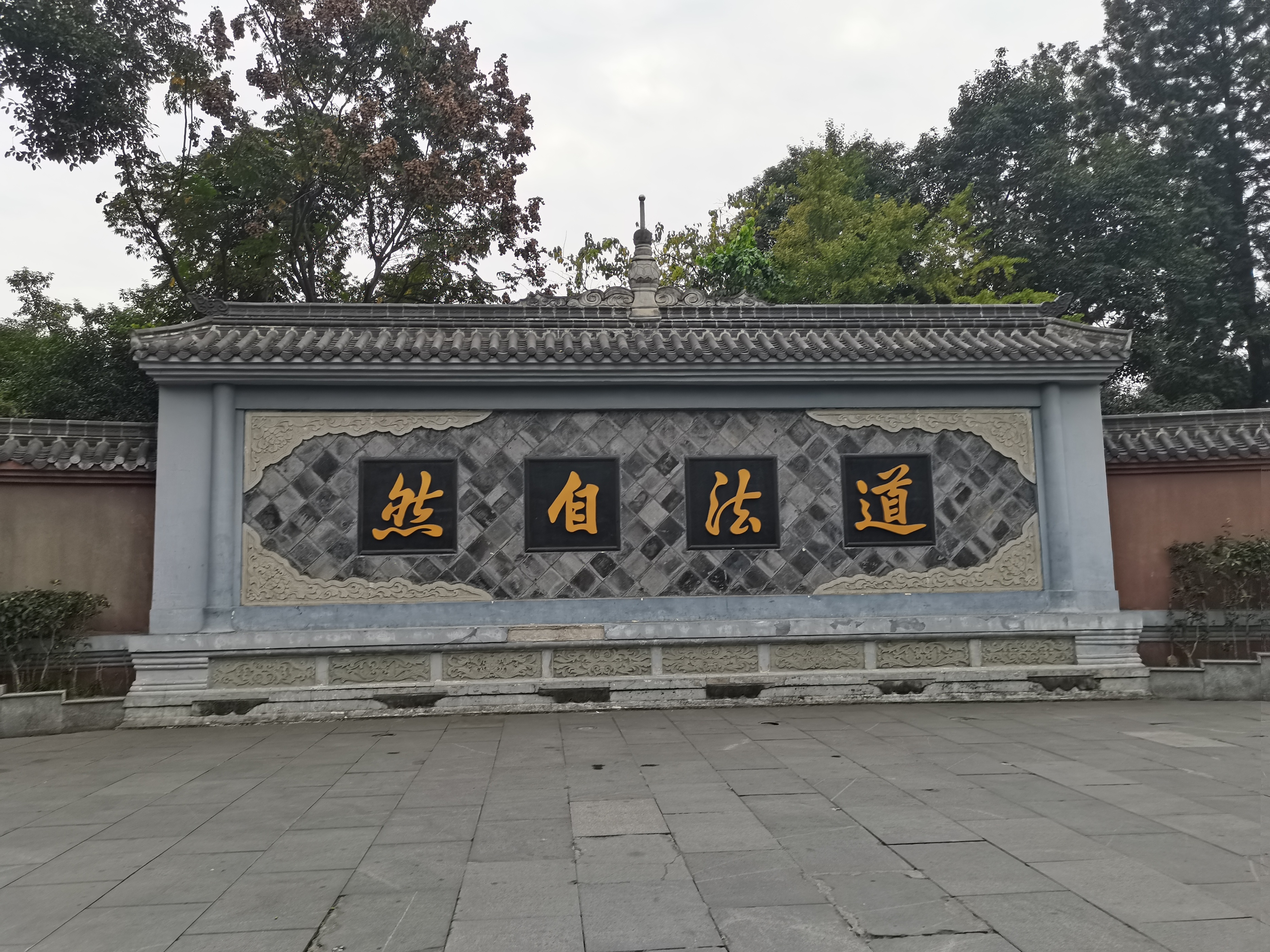 山门旁还立有一块照壁,上书有四个烫金的大字:道法自然。
