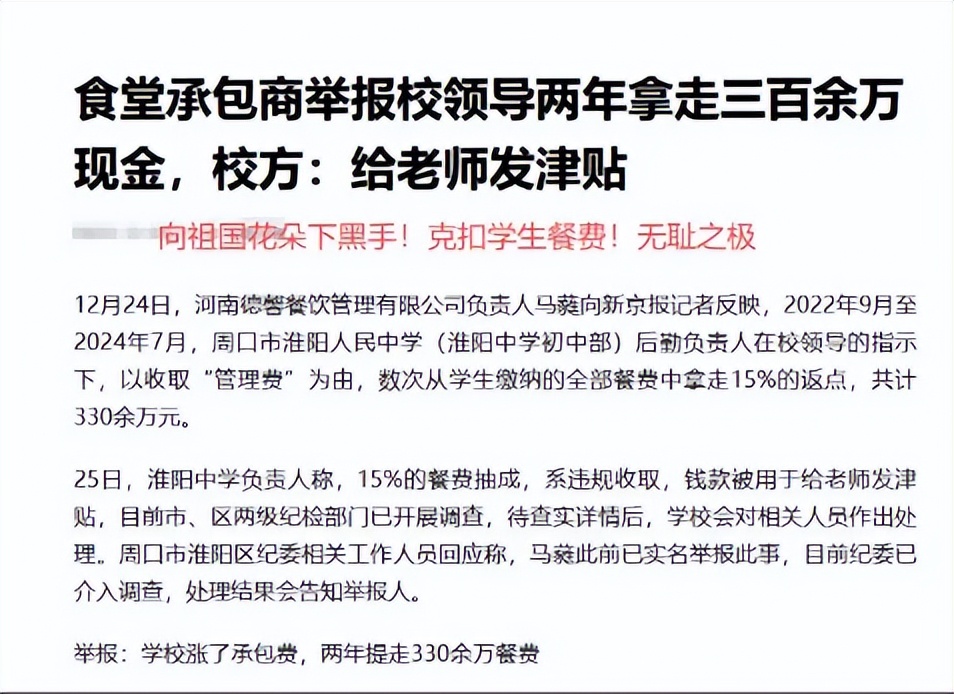 严惩这些贪婪的蛀虫,还孩子们一个健康、公平的用餐环境,让教育回归其本真的模样!