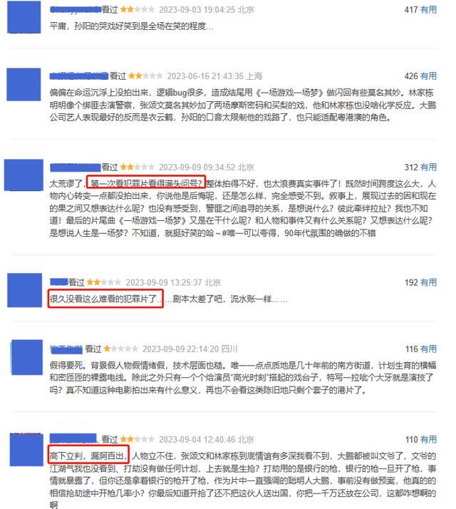 看看豆瓣评论就知道了,差评简直是层出不穷,也有观众强调,真的很出乎意料,首次看不懂犯罪片,而且漏洞不要太多了,不得不说,这样的评价还是非常犀利的。