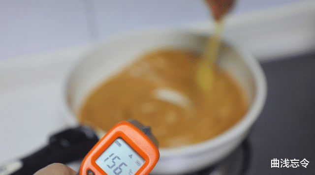 2.全程火力不要忽高忽低。推荐可以全程中火补改变火力。过程中特别是中后期要不停搅拌使糖液受热均匀,搅拌的时候贴着锅底,尽量一个方向,不要混乱或过度搅拌。后期温度升高,搅拌速度要加快,让糖和油充分融合,后期就不易出油。温度保持一致和糖油充分混合均匀,都是不出油的重要原因之一。