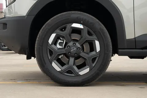 车身侧面也有不少细节。车顶有个行李架,看着干练,而且很实用——喜欢自驾游的话,绑个自行车、装个行李箱都方便。下面有固定式脚踏板,老人小孩上下车不用费劲踮脚,这点对家庭用户太友好了。车身侧面有几条隆起的线条,带出点肌肉感,再配上黑色的轮眉和侧裙,越野那味儿一下就出来了。轮毂尺寸也够用,18英寸的(2.0T车型是19英寸),看着不小,而且兼顾了舒适性和抓地力,日常开和偶尔走烂路都没问题。