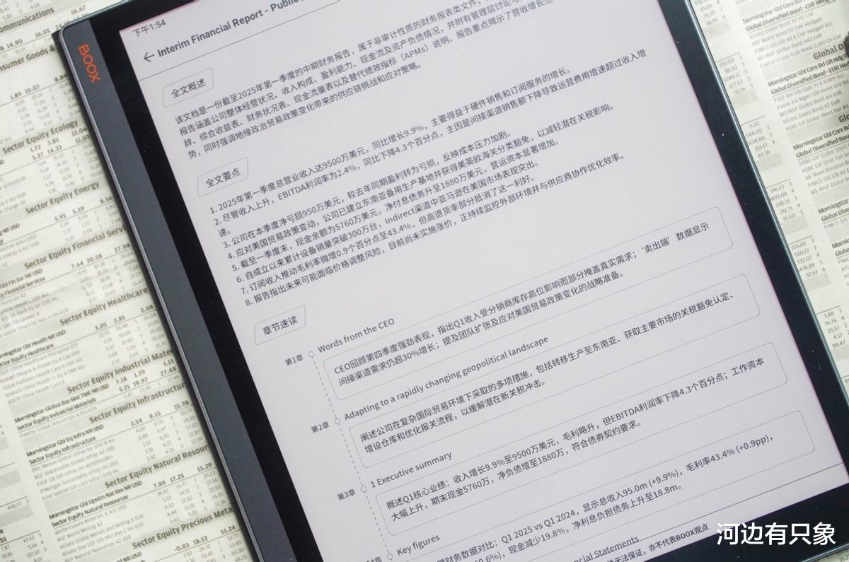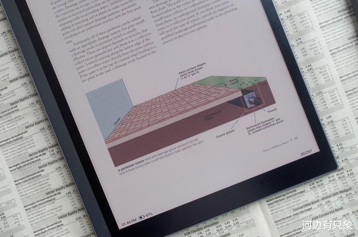 在强烈阳光下也完全不用担心墨水屏的显示效果,不用去关注屏幕显示多少nit亮度,这个就更像纸了。