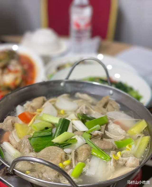 炖肥肠:肥肠处理得超干净,直接和素菜一起炖,肥肠吃起来Q弹,有点嚼劲,搭配蘸水吃,辣味也有,是很多人必点的菜。