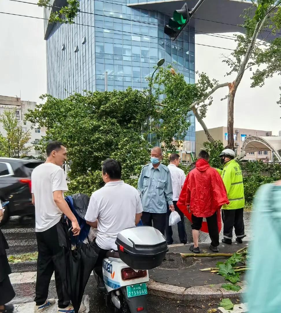 看着这满街的断树,让人感叹到人在大自然面前是有多么的渺小,不过好在总有一群逆行者一直默默地守护着大家为了保证交通畅通交警同志们顶着狂风暴雨清理路上的树木