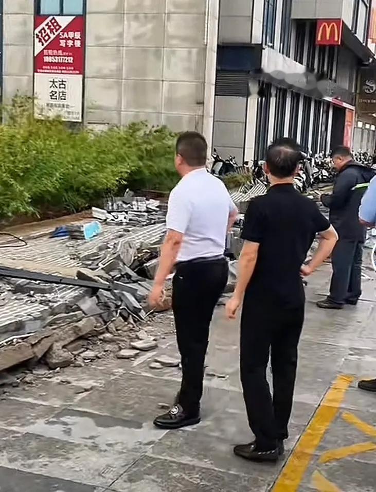八级大风更是将写字楼前的围墙给吹倒了,这就让人有点绷不住了,不知道到底是风太大,还是墙体的质量太差劲了。