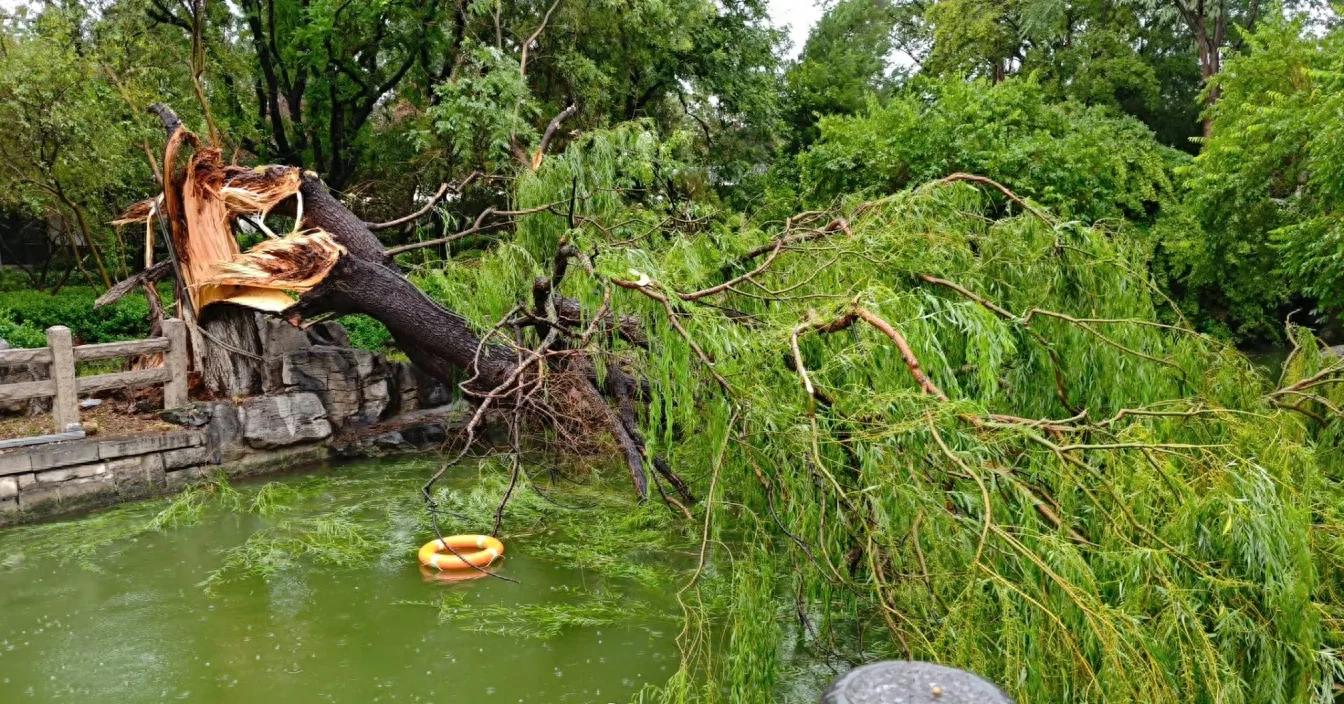 下面就根据网友拍摄的视频和图片中,我们来好好的感受一下这场济南的暴雨有多大,一名网友晒图表示正在趵突泉玩得好好的,忽然狂风大作,一棵腰粗的柳树被拦腰刮断,让所有人都恐惧不已,纷纷跑进了亭子里边避雨。