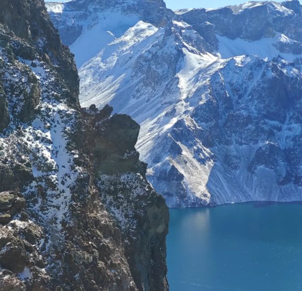 长白山最引人注目的地标是环抱于奇峰之中的天池。它是火山喷发后自然形成的火山口湖,南北长约4400米,东西宽约3370米。天池的水面海拔达2189.1米,使其成为世界上海拔最高的火山湖。天池的景观随天气瞬息万变,时而湖水清澈如镜,倒映着周围的十六座山峰,时而云雾弥漫,平添神秘。