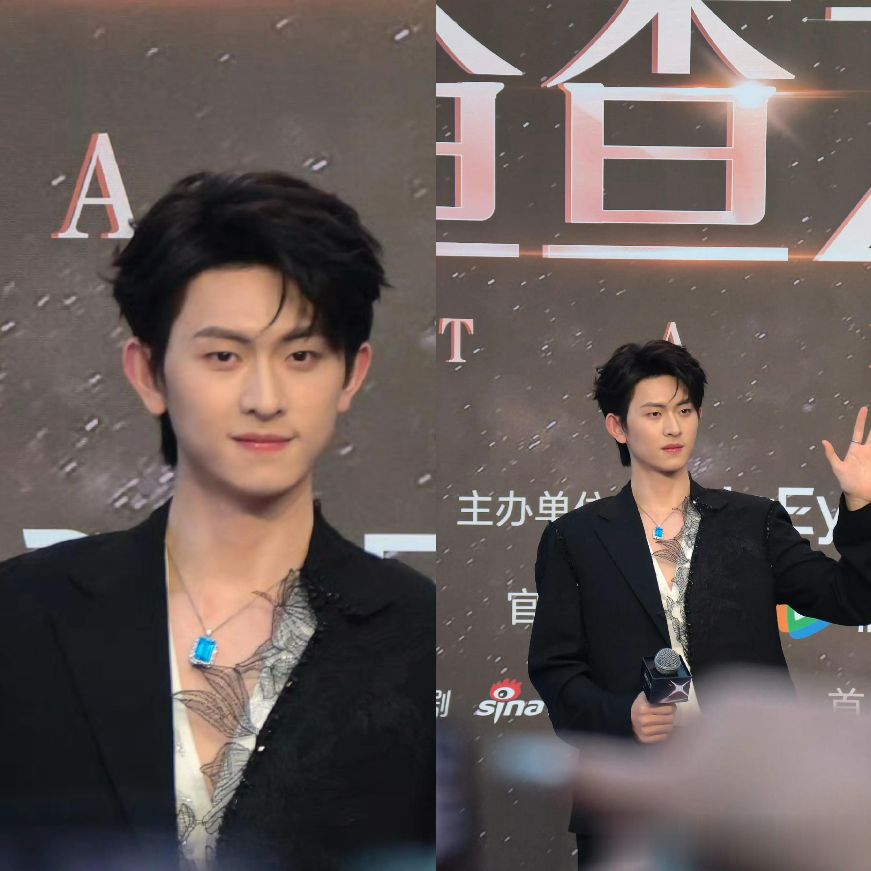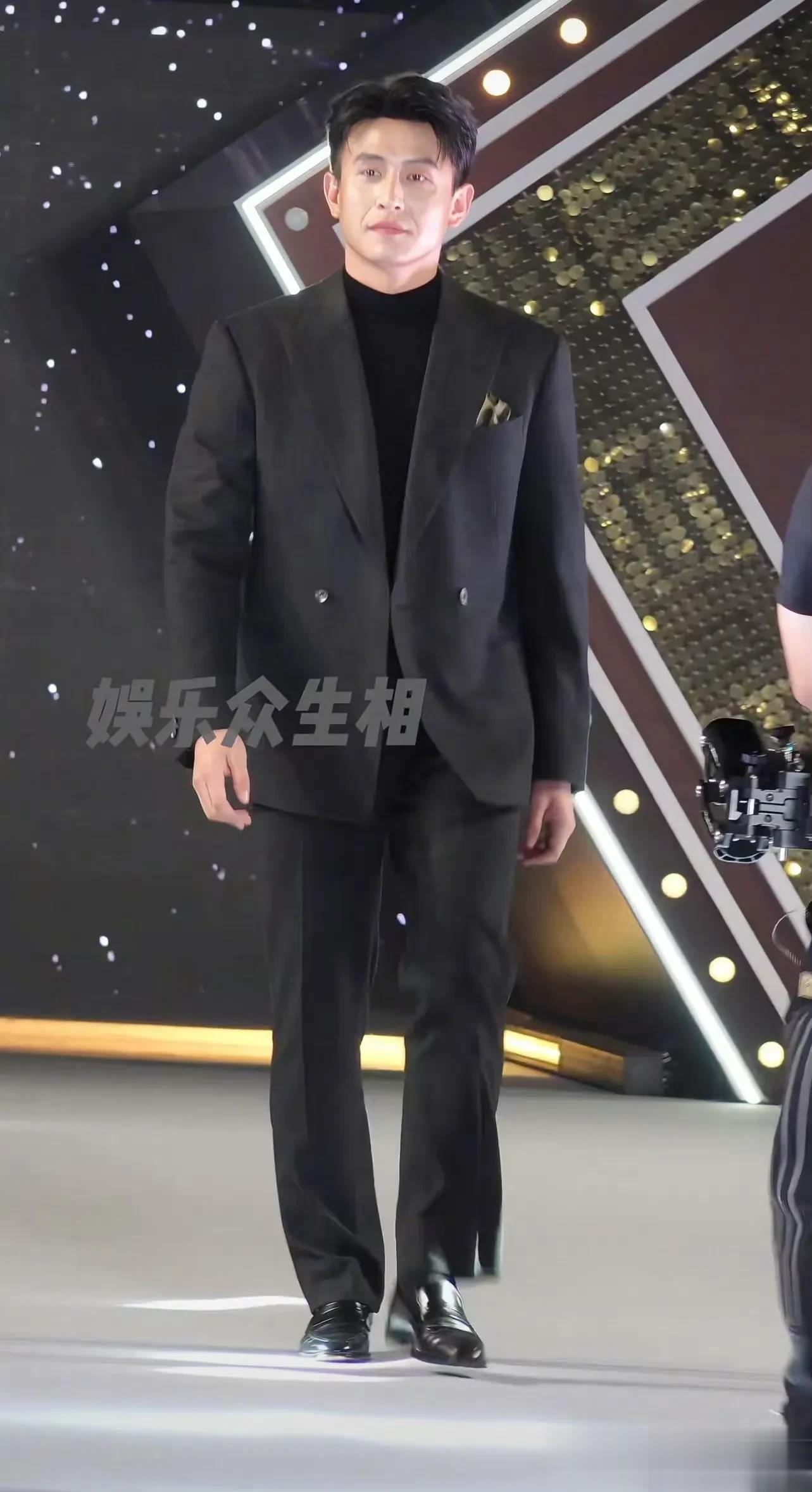 作为目前正当红的他,人气高涨,第一个出来热场子也是无可厚非。这身暗纹亮片西装很衬他儒雅的气质,就是这双厚底鞋有点拖后腿,和整体造型不太搭。只能说男明星为了能显高衣服也是煞费苦心!