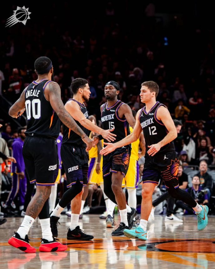 太阳这边,全队也有6人得分上双。布克表现不错,出战27分钟,14投7中,三分2中0,罚球8中7,砍下21分2篮板11助攻2抢断的两双,正负值+21。狄龙手感火热,出场24分钟,15投10中,三分6中3,罚球2中2,拿到全队最高的25分,篮板、助攻、抢断、盖帽均为0,正负值+20。