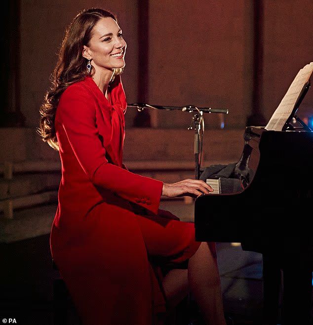 身旁的凯特王妃时而与女儿合奏,时而温柔注视,母女二人的默契在音符间自然流淌。