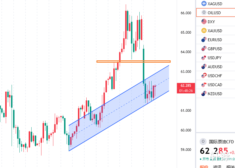 原油反弹62.8附近空,防守63.5,目标看61/60一线