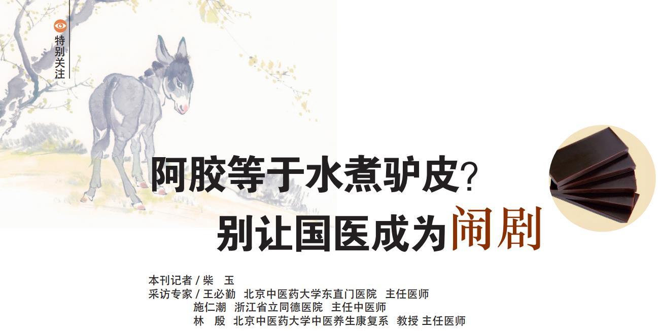 综合诸专家所言可见,“阿胶等于水煮驴皮”就是一场“闹剧”。阿胶不能从现代医学“有效成分”的角度去分析,阿胶在人体内的作用过程也不能从西医药理学的角度去阐释。经国医大师、中医临床医师、养生康复学者剖析,阿胶作为本草上品,其功能毋庸置疑,但应对证、辨证选用,不可盲目食用。另外,不论厂家还是医者不应扩大阿胶适应症,更不该杜撰出“历史典故”,进行不实宣传。