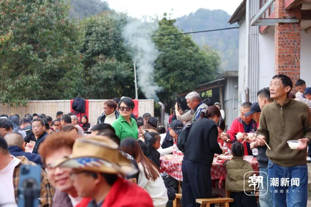 “小时候在村里吃过,印象特别深。现在的孩子哪还有机会体验这种风俗?”他说,最近只要打开短视频,满屏都是年猪宴,“既然家门口就有,当然要带他来看看。”