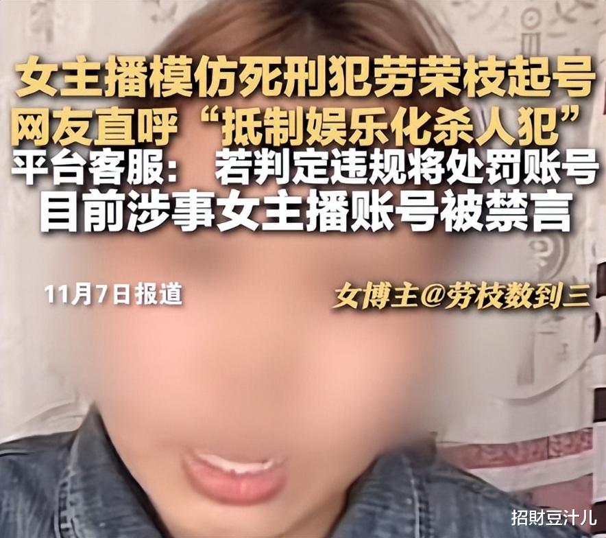 这已经不是第一次有人打劳荣枝的主意,早在 2020 年,就有个六万粉丝的颜值博主发图自称 “某荣枝模仿秀”,最后被平台禁言处理。可为何还总有人前赴后继?答案很残酷:在部分人眼里,“流量就是一切”,哪怕是恶名、骂名,只要能带来关注和变现,就值得去做。他们算准了 “争议 = 热度”,知道模仿罪犯会引发骂战,而骂战本身就能推高直播间人气、增加账号曝光。就像这次 “劳枝数到三” 的直播,即便满屏都是骂声,观看人数却在不断上涨 —— 这种 “越骂越火” 的畸形生态,让一些人彻底丢掉了良知,陷入 “为流量无底线” 的疯狂。