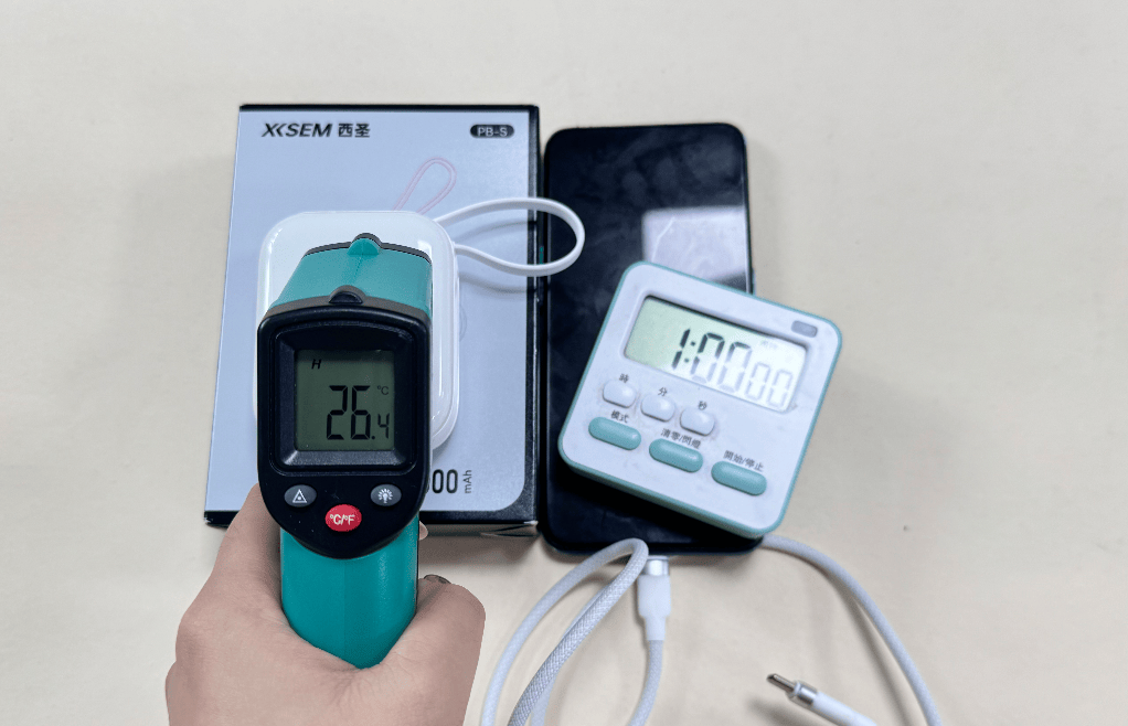这款充电宝在控温和散热方面真的是我用过的最强一款!不管是高温环境还是低温天气,充电宝的机身和电池都始终保持冷静,完全没有过热的情况发生。它搭载了NTC温度传感阵列,配合MPC智能控温算法,确保充电过程中实时监测温度变化,在实测的1个小时中,机身的温度仅只有26.4℃,充电宝一旦温度升高,系统会自动调节输出功率,确保温度稳定。