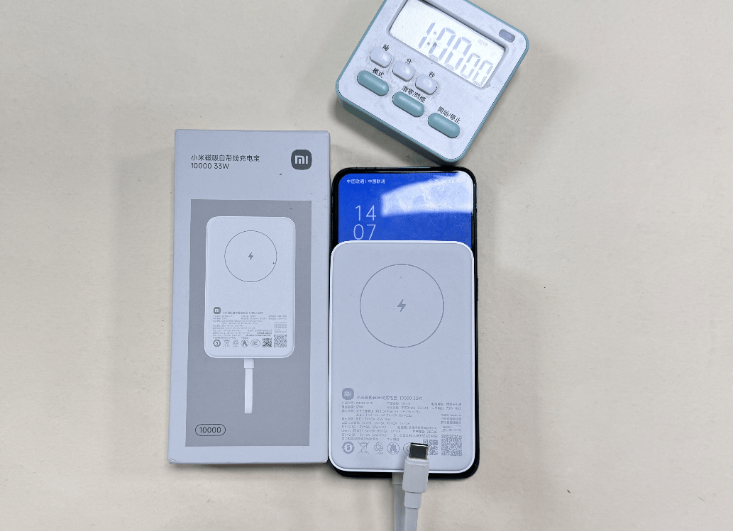 小米这款充电宝在有线充电功率上比较快,支持最高22.5W功率,测评时,1个小时左右,手机电量成功充到了85%,还算比较快。相比之下,无线充电速度就稍慢一些,1个小时的时间,手机电量从1%开始充,只充到了71%电量。