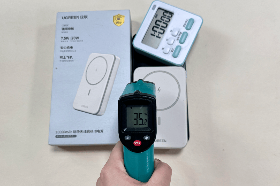 在实测的1小时内,绿联这款充电宝的温度稍微高了一些,达到了35.2℃,但这个控温范围,是在一个正常的一范围,在使用过程中注意散热就可以了