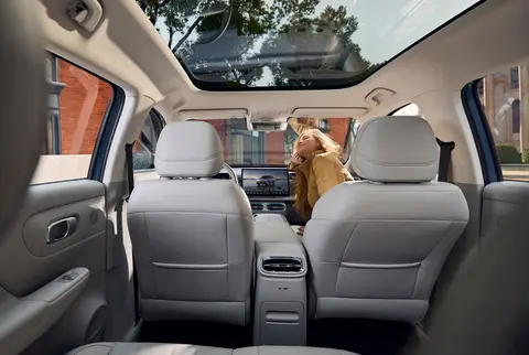 在空间与尺寸方面上:作为一款轴距2735mm的紧凑型SUV,零跑B10后排腿部空间约两拳(身高176cm实测),头部空间1005mm,坐垫长度够承托大腿。后备箱常规容积420L,后排座椅放倒后能扩展到1415L,实测竖着放两个28寸行李箱+婴儿车没问题。后排地台纯平,中间座位脚下也能放包,空调出风口位置合理,不会直吹孩子头部。NVH控制中等水平,80km/h以下安静,12喇叭音响效果中规中矩,低音偏弱,但K歌功能确实好玩,全家出游时孩子能当移动KTV用。无线充电板功率15W,充iPhone够用。
