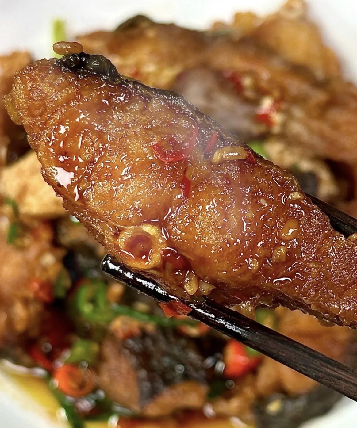 草鱼绝对是做这道菜的“天选之子”!肉厚,价格亲民,超市或菜市场随便挑一条活蹦乱跳的就行(约2斤重最合适)。鱼鳞刮干净,鱼鳃、内脏全掏空,尤其是腹腔里的黑膜一定要撕掉(那是腥味源头!)。把鱼头切下来(留着炖汤),鱼身剁成3厘米宽的块,别太小!太小容易炒碎,太大不入味。鱼块放碗里,加1勺料酒、2片姜、1勺盐、半勺白胡椒粉,抓匀后腌15分钟。腌完用清水冲掉表面盐分,再用厨房纸吸干水分(这一步防粘锅!)