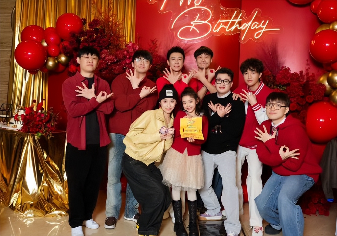 从现场照片中来看,小酒窝穿着红色连衣裙,踮脚把贺卡塞进张维伊手里,转身就跳上沙发往他脸上抹奶油,张维伊笑着顺势接住,眼底满是宠溺。董璇在一旁举着手机笑到流泪,董璇父母还特意换上与张维伊同款的红色上衣,老爷子拉着他喝交杯酒,俨然把他当成亲儿子对待。佟丽娅、佟大为关悦夫妇等好友也悉数到场,整场宴会氛围温馨和睦,完全打破了重组家庭的刻板印象,堪称“娱乐圈重组家庭教学现场”。