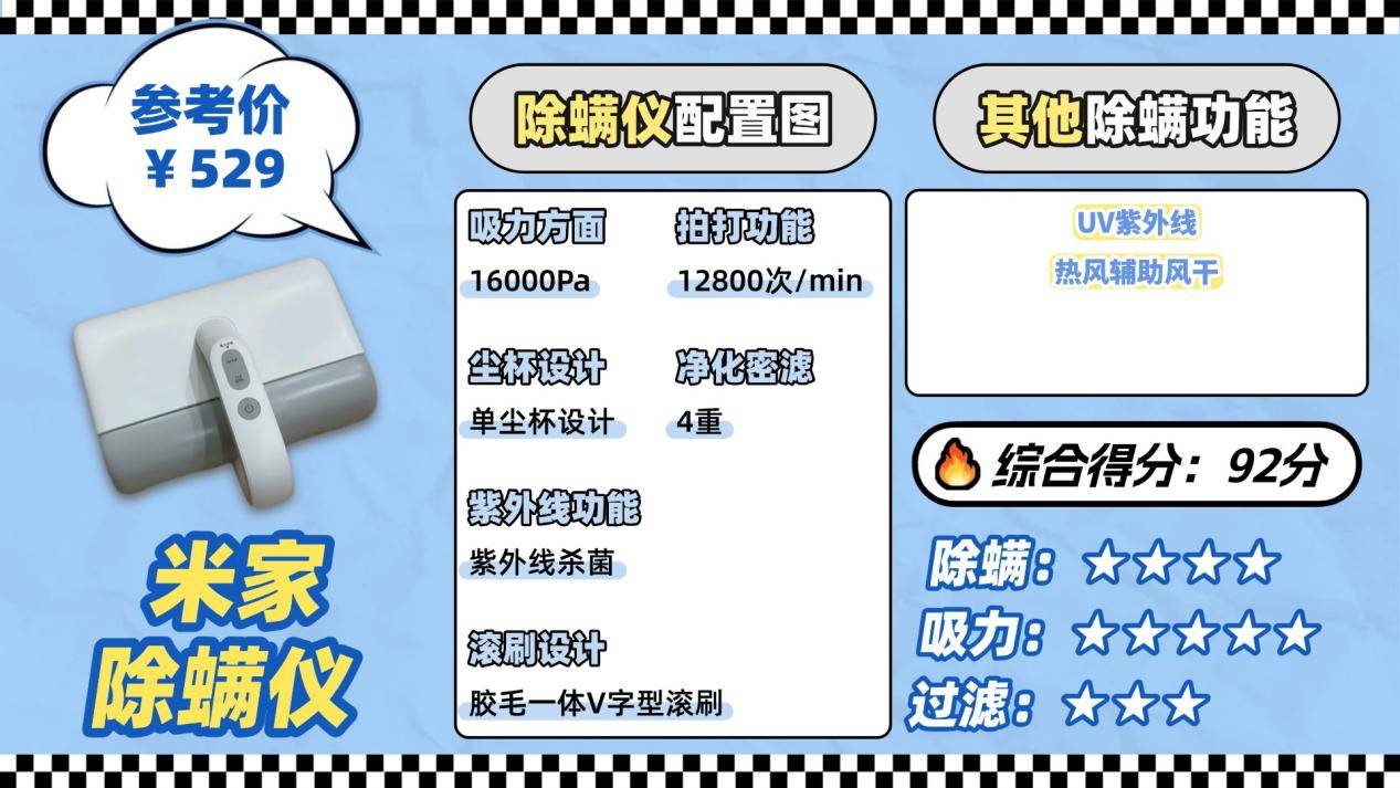 警惕「吸力虚标、拍打无力」陷阱——不少产品标着大功率大吸力,实际吸个表面浮尘都费劲,深层螨虫根本拍不出来。尽量选有专业吸力检测、口碑实打实的品牌,避开只靠广告吹参数的款式。