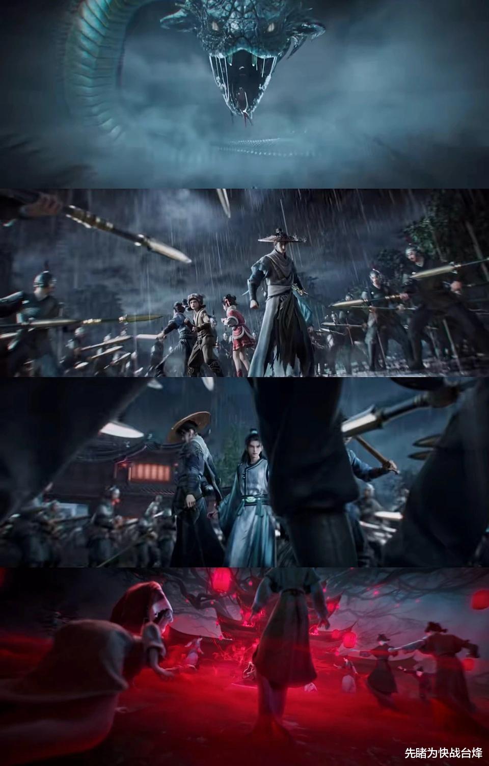 但最让人肾上腺素飙升的,还是陈平安与众人联手对战黑白两巨蛇的名场面。那一战打得天昏地暗,堪称“天可烹、地可煮”的惊天对决。
