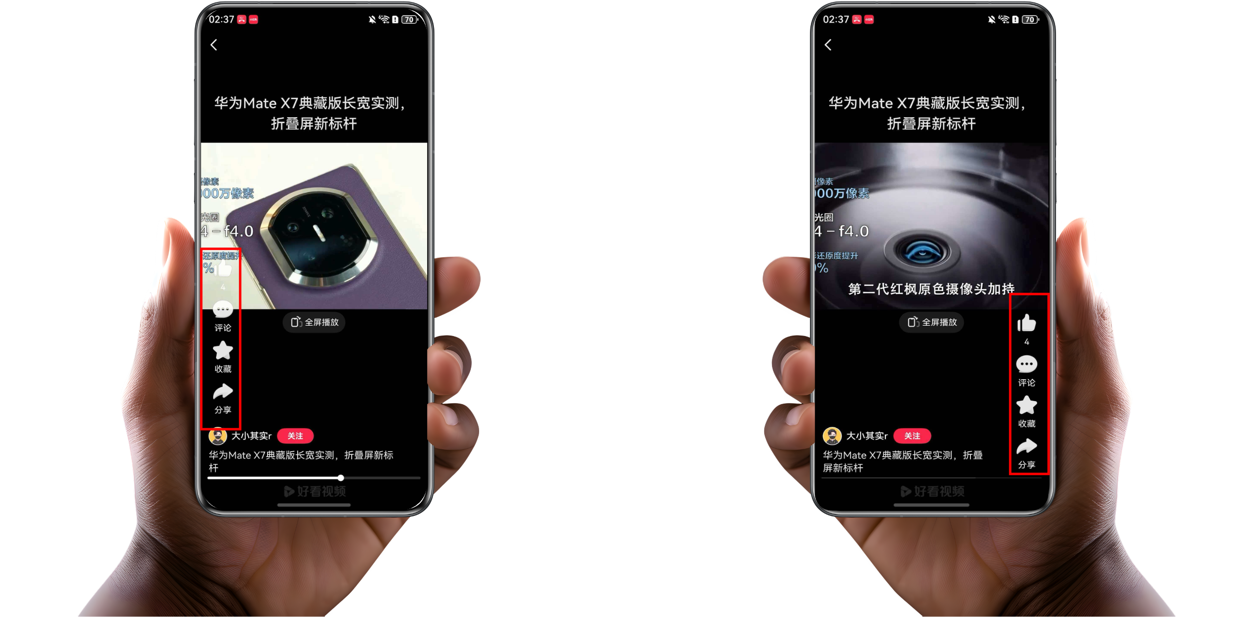 昨晚躺床上刷鸿蒙版好看视频,左手蜷着举着手机,想给看完的短视频点个赞,指尖刚抬起来就愣了一下,点赞、收藏、评论和转发按钮居然变位置了:以前都是在右边,现在自动跑到左边,大拇指不用横跨整个屏幕就能轻松点赞。