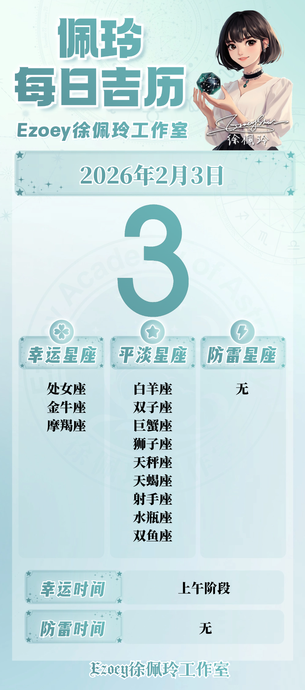 【2.3日播报】务实勤勉日 幸运星座:处女座、金牛座、摩羯座——Ezoey徐佩玲26年星座播报