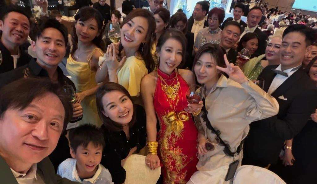 婚礼进行到一半,陈婉衡换上了一件鲜艳夺目的中式红色礼服,挂颈露肩的设计极具看点,再加上满满的金器首饰点缀,整个人闪耀夺目。她颈间至少佩戴了三对流星锤式的龙凤镯,手腕上也是三对龙凤镯,金猪金链熠熠生辉,尽显高贵气息。她的姐妹团同样亮眼,TVB的好姐妹们,包括朱智贤、简淑儿、蔡佩贤等,都身着统一的香槟金长裙,优雅地围绕在新娘身边。除了好友,TVB的老同事也纷纷到场祝贺,《3日2夜》的监制张志明和黄颖君等都现身现场,为婚礼增添了不少星光与温度。