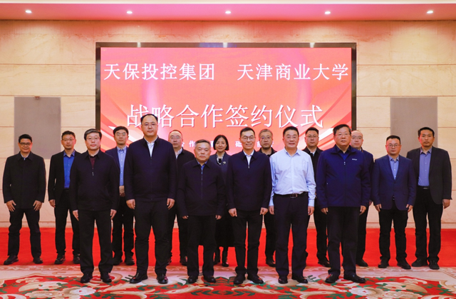 6、近日,天保投控集团与天津商业大学在空港投资服务中心举行战略合作签约仪式。公司党委书记、董事长钟晓龙,天津商业大学党委书记张亚共同见证签约。公司党委副书记、总经理时胜强,天津商业大学党委副书记崔强代表双方签约。公司副总经理李振,天津商业大学副校长齐恩平参加。双方将围绕党组织结对共建、实习实训、人才培养、校企技术对接、产学研平台打造,以及冷链物流、绿色低碳、智库专家支持等方面深化合作。