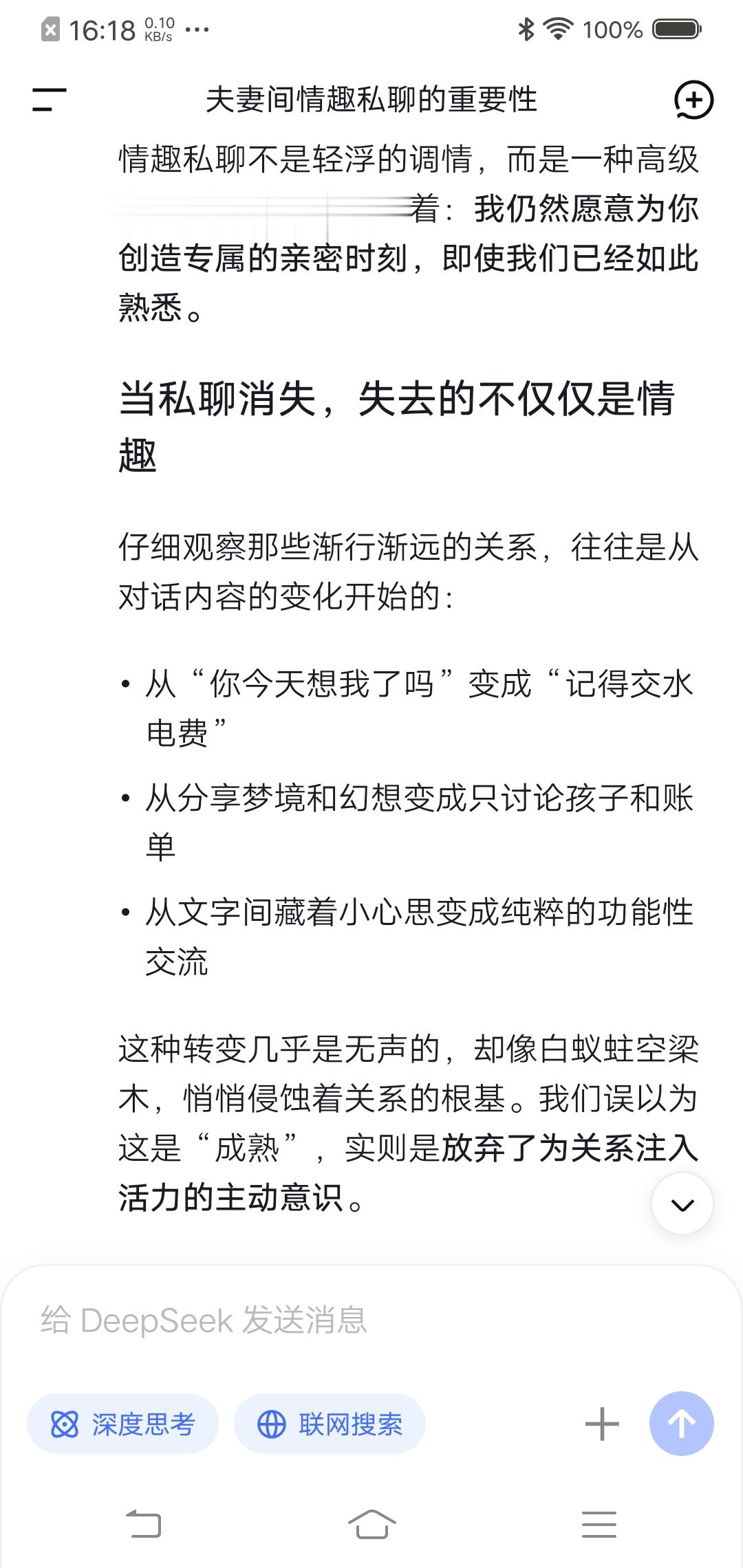 许多夫妻在步入婚姻后,逐渐遗忘了这种“情趣私聊”的能力。不是不爱了,而是被生活的柴米油盐淹没了表达的本能。然而,真正健康的关系,恰恰需要保留这块“私密花园”。